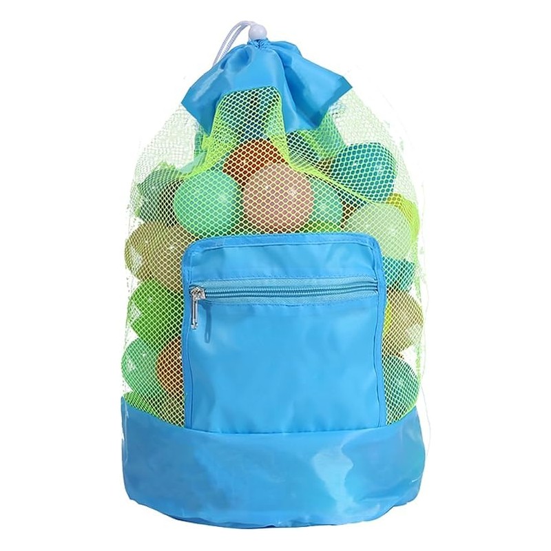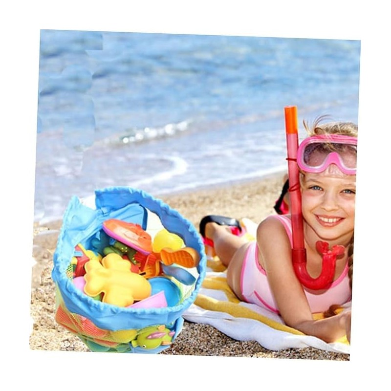 Drawstring Beach Toy Bag, 1Pc Portable Mesh Backpack Beach Tote, Drawstring Beach Shell Toy Bag Mesh Backpack for Beach or Pool, Blue