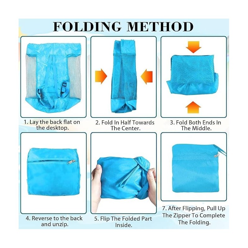 - Easy to carry: This foldable swim mesh sand beach bag can be folded into a small bag, which is convenient to put in your pocket, car or luggage. Easy to carry, perfect for travelers and fitness enthusiasts.