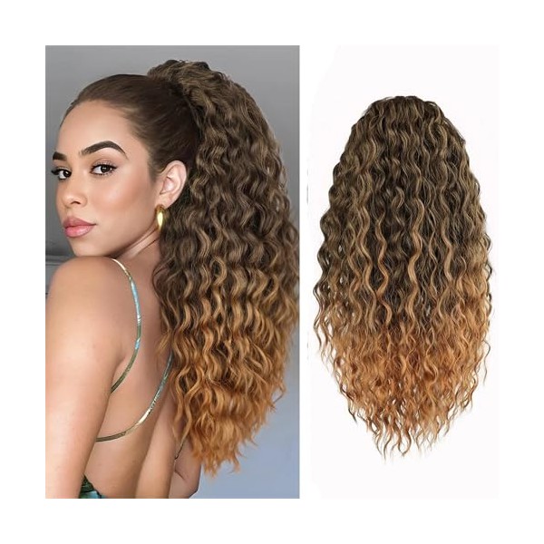 Drawstring Ponytail Extension Curly Hair Extensions, Synthetic Pony Tails Extensions Human Hair Feeling, Kinky Curly Ponytail Afro Puff Drawstring Ponytail for Black Women(22inch MT1B/27#) 1.0 Count
