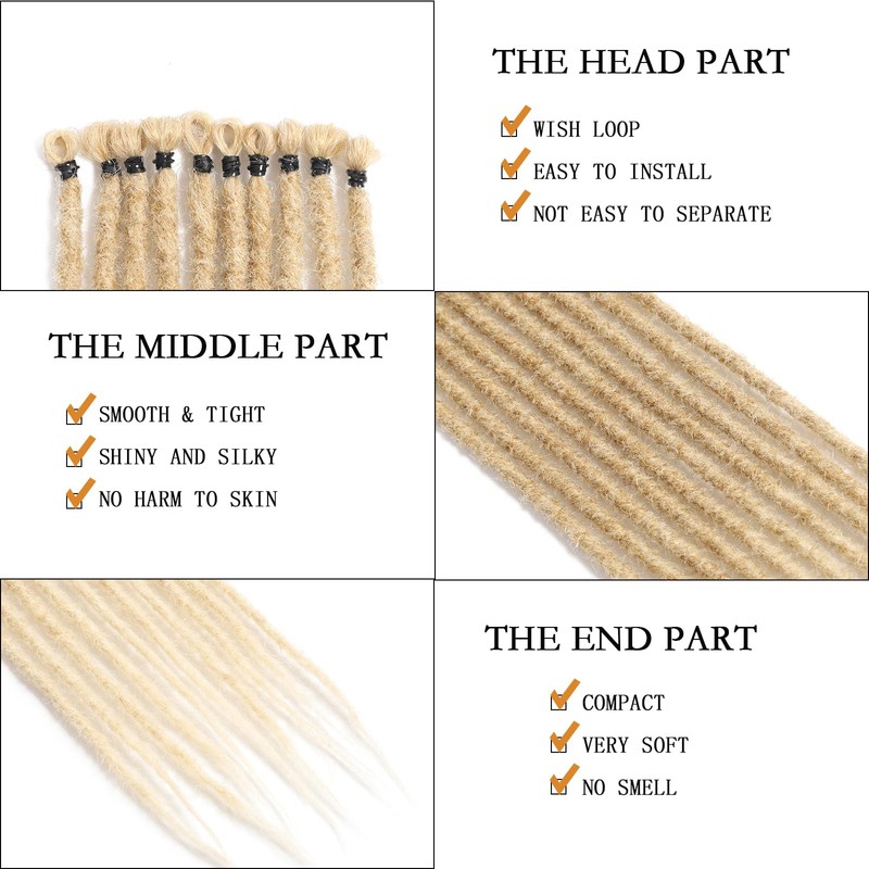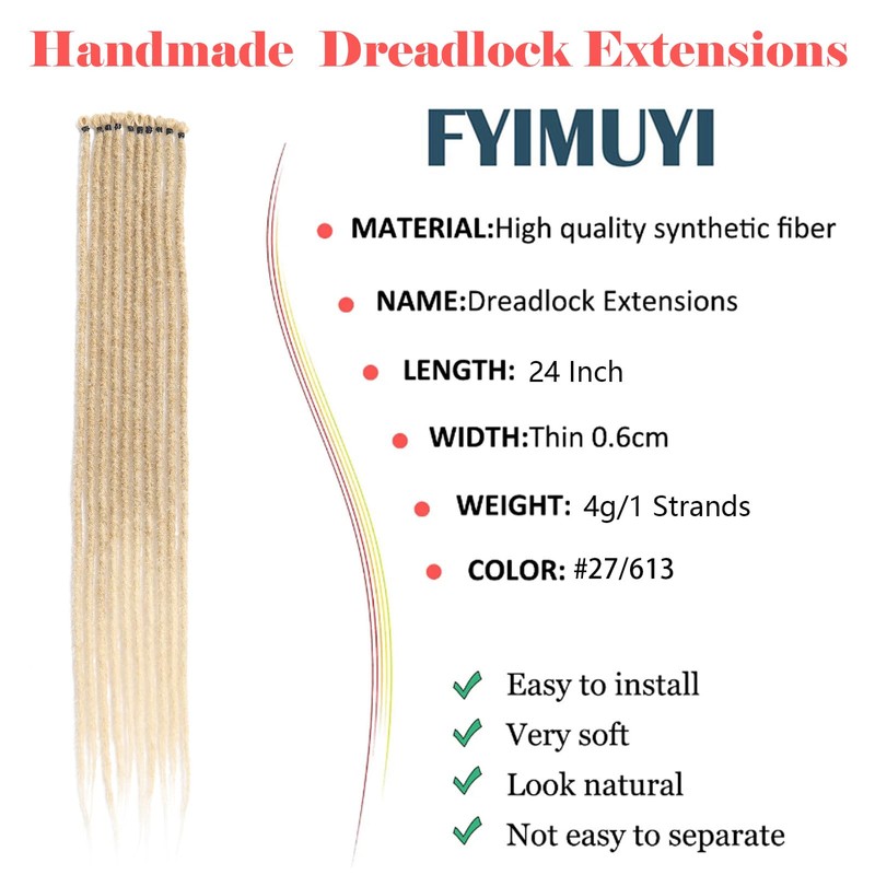 - Material:100% Handmade High Quality Synthetic Fiber Dreadlock Extensions, Light Weight And Very Soft, No Odor, No Itch, Skin Friendly, Tight, Long Lasting, Easy To Install, Natural Looking.