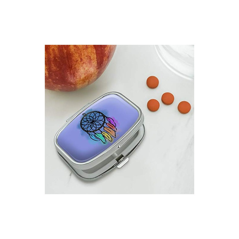 Dream Catcher with Rainbow Feathers Watercolor Sketch Rectangle Pill Case Trinket Gift Box