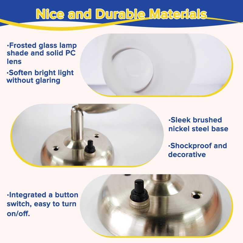 - Integrated Button Switch - The on/off button switch is integrated into the metal holder. It is convenient for use. This light is compatible with external wall switch (not included).