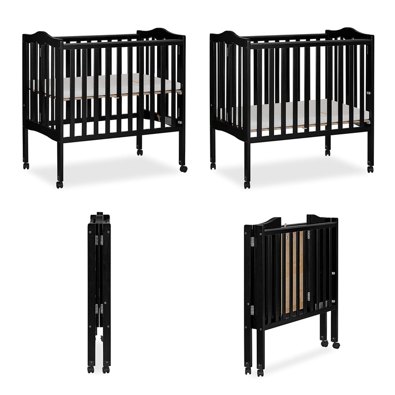 Dream On Me 2-in-1 Lightweight Folding Portable Stationary Side Crib in Black, Greenguard Gold Certified 40x26x38 Inch (Pack of 1)