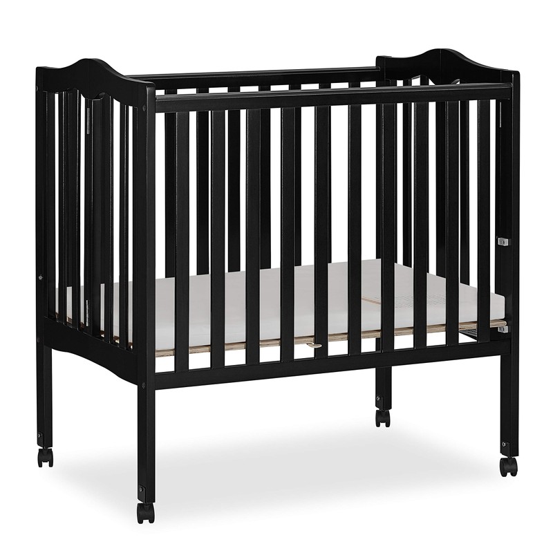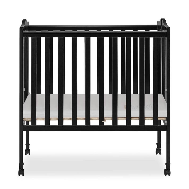The Dream On Me 2 in 1 Lightweight Folding Portable Stationary Side Crib, with its modern aesthetic and features, is a nursery must-have for today’s parents. Crib assembly is quick and the U.S. patented rail design allows you to easily convert the crib to a playpen in seconds The unique hinge system allows you to fold the crib flat, with just one hand, for compact storage. It’s lightweight, portable frame with wheels makes it easy for you to move it around the house. Take it on your travels or to grandma’s house! Safety is a top priority at Dream On Me. The stationary (non drop side) rail system and dual hooded, locking wheels provide the utmost in product safety. It meets the applicable ASTM/CPSC standards Made of pinewood, it’s lean, minimalist design and six stylish finish options give it a versatile appeal, allowing it to mix and match into any room decor. One inch crib mattress and tools for easy assembly included. Crib dimensions are 40L x 26W x 38H. One inch crib mattress and tools for easy assembly included. Maximum baby weight limit is 35 lbs.