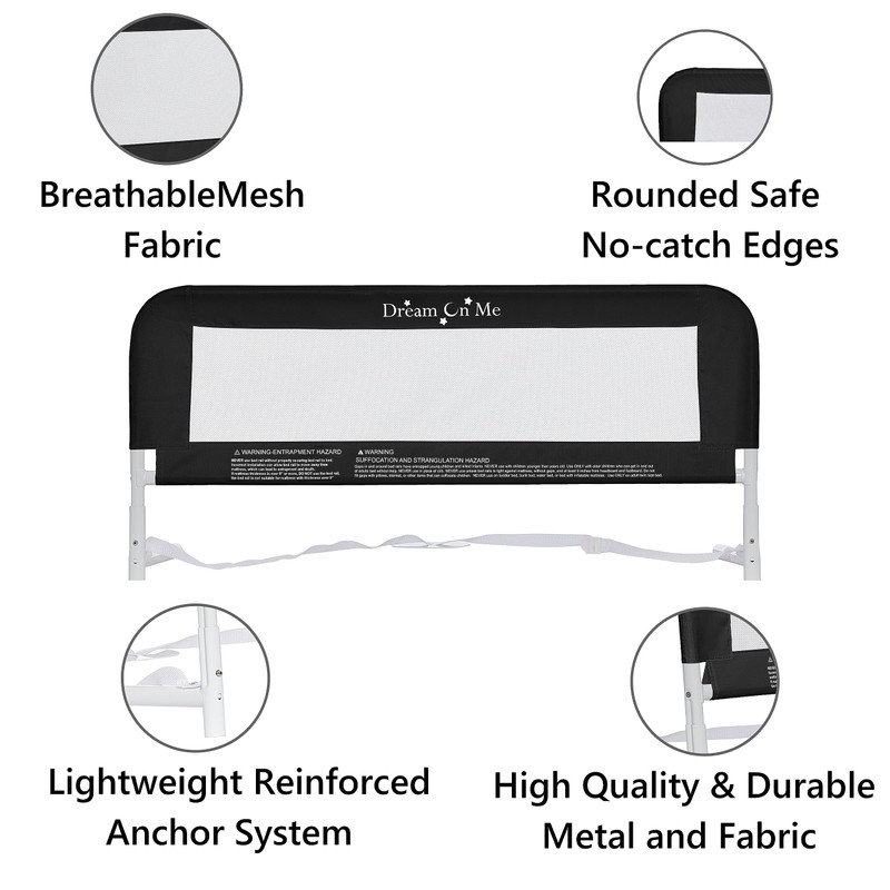 - INNOVATIVE DESIGN: The lightweight, portable & travel-friendly Dream On Me Mesh Security Bed Rail features a high-quality, soft and comfortable, breathable mesh fabric