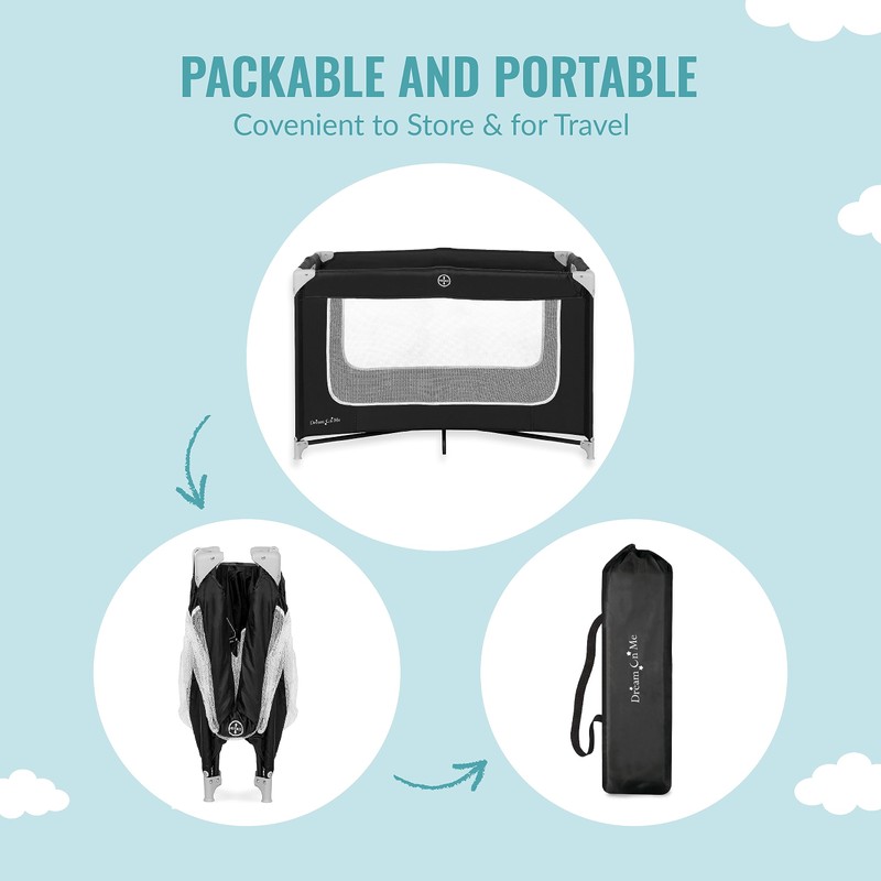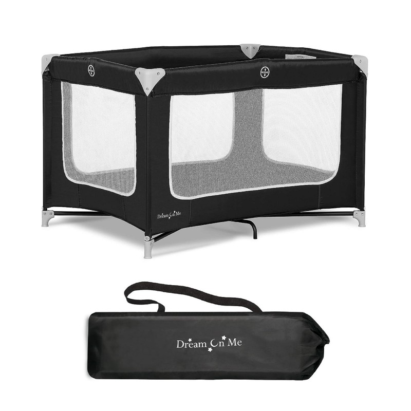 Dream On Me Zoom Portable Playard in Black, Lightweight, Packable and Easy Setup Baby Playard, Breathable Mesh Sides and Soft Fabric - Comes with a Removable Padded Mat