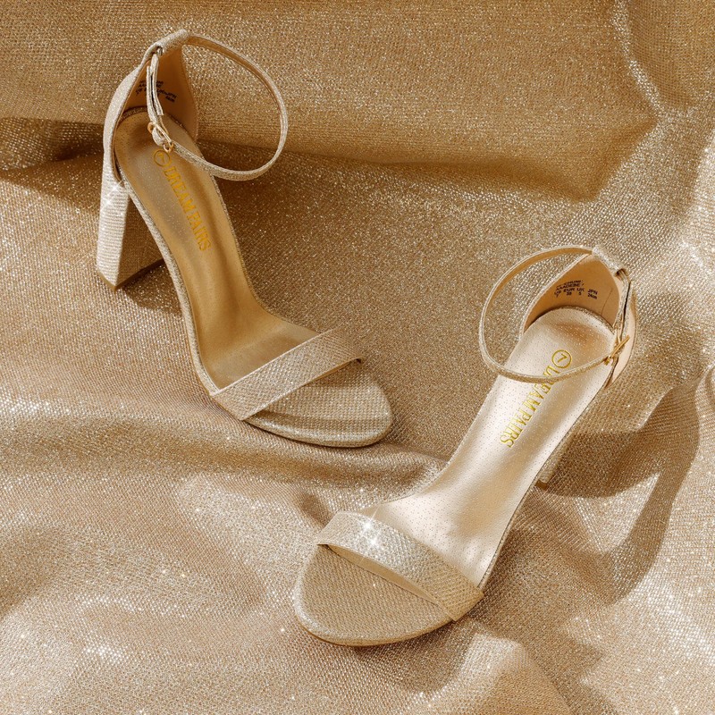 DREAM PAIRS Womens Hi-Chunk High Heel Pump Sandal Gold Glitter - 6.5