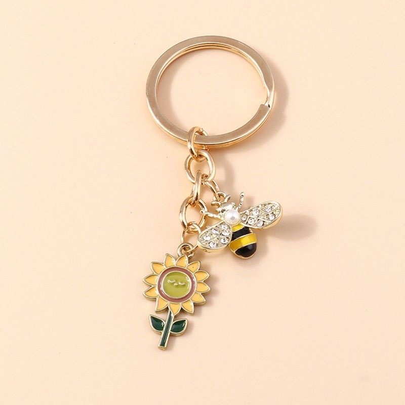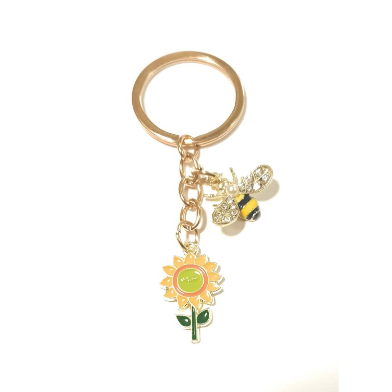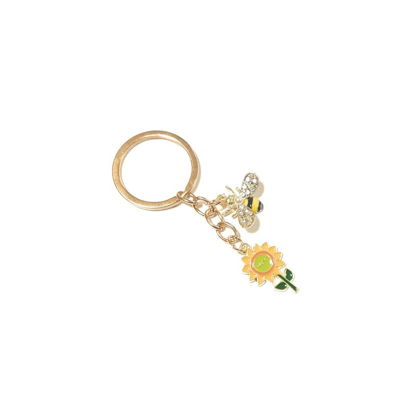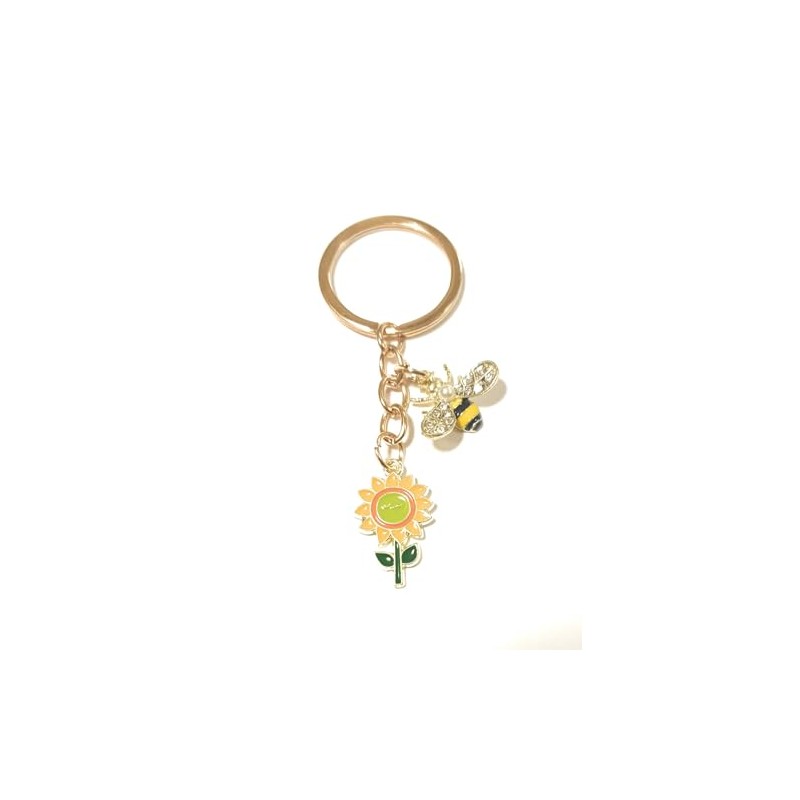 - Keyring Sunflower and Glitter Bee Colour Gold