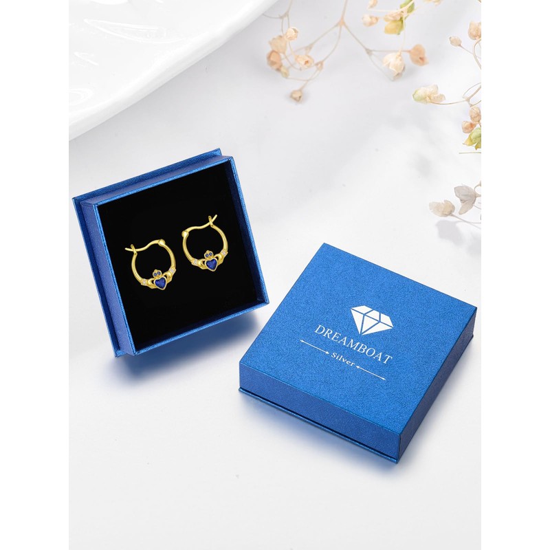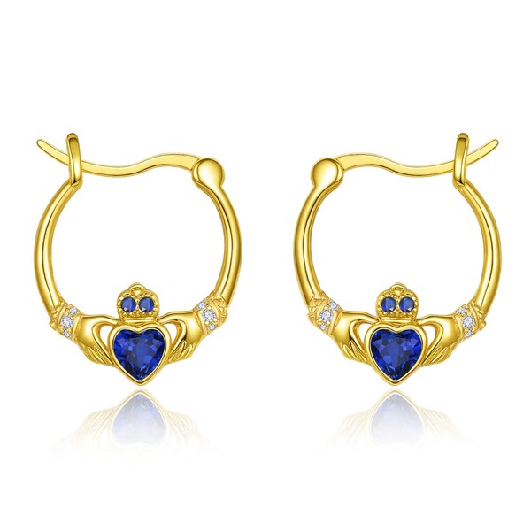 Dreamboat Sterling Silver Claddagh Earrings for Women Gold Celtic Knot Irish Clover Earrings Dangle Earrings Hook Blue September Birthstone Irish Jewelry for Mom, Large, Sterling Silver, Cubic