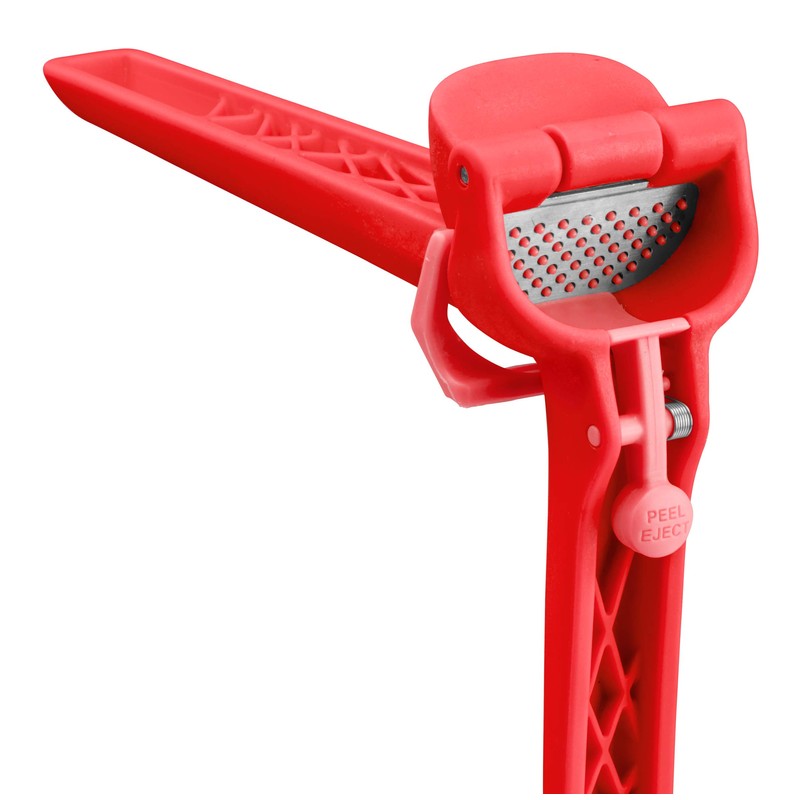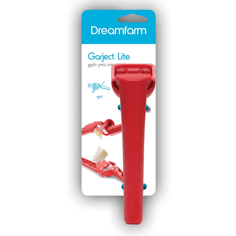 Dreamfarm Garject Lite | Non-Scratch Garlic Press with Ejector | All-In-One Garlic Mincer Tool | Nylon Plastic Garlic Peeler | Easy-To-Clean Garlic Presser | No Peel Needed & No Smelly Fingers | Red