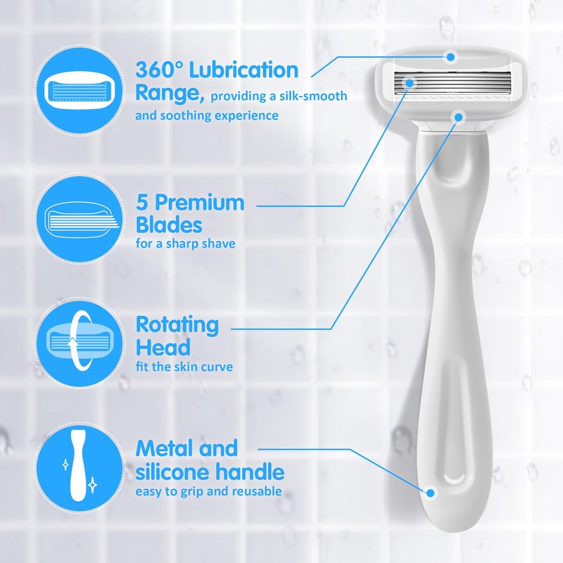 - Five Premium Blades: The five-blade razors for women with a smooth and clean shave; Reduce the chance of hair snagging while shaving, more transparent