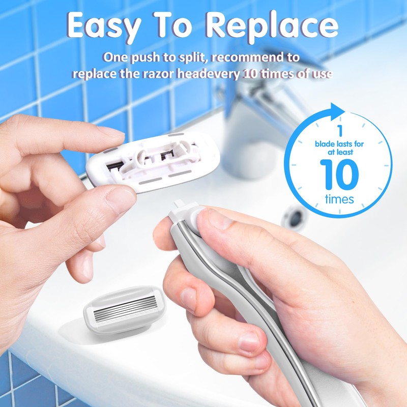 - Easy To Replace: Reinforced design at the razor connector, the snap is stronger and easier to replace; When replacing the razor head, just hold most of the head with the blade facing down and press the button to remove it