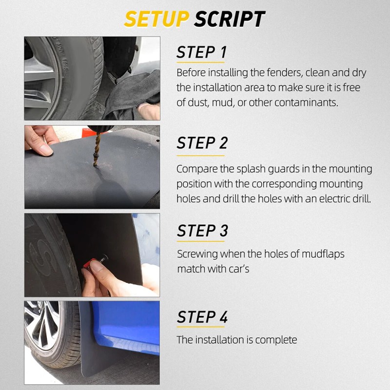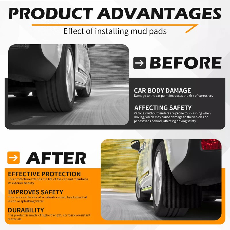 - Material: High Grade PP+TPO Plastic. Molded Splash Guards.