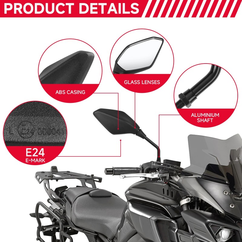 - Material: Aluminium Stem+ABS Plastic Shell+Glass Mirror