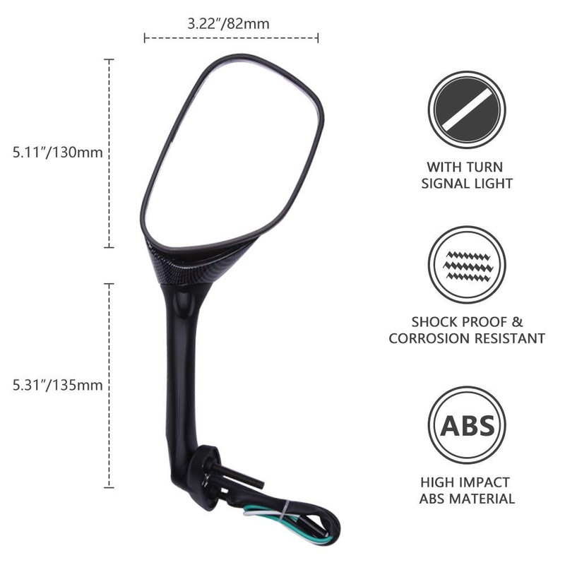 DREAMIZER Rear View Side Mirror with Turn Signal Lights Integrated Lamp for GSXR 600 750 1000 - Carbon Fiber,Smoke Lens