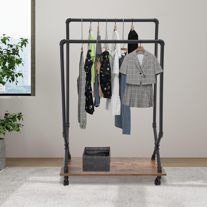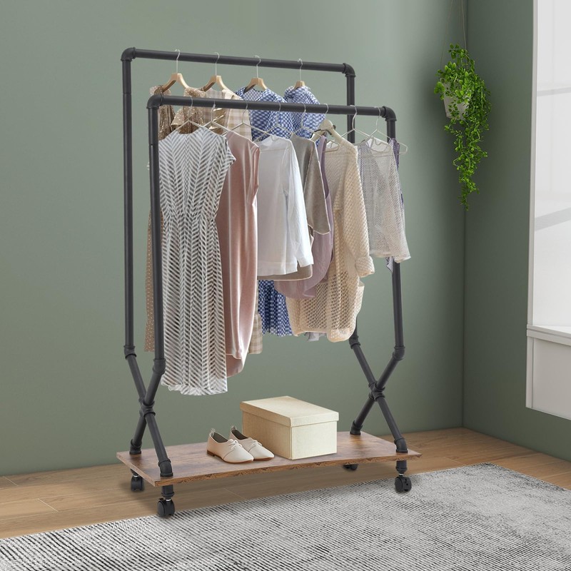 - 【𝗔𝗺𝗽𝗹𝗲 𝗦𝘁𝗼𝗿𝗮𝗴𝗲 𝗦𝗽𝗮𝗰𝗲】Featuring a dual crossbar design, this rack provides generous hanging space for multiple clothing items side by side. The bottom shelf is perfect for storing shoes, boxes, or bags, enhancing your organization while maximizing vertical space in your laundry room, retail store, or boutique.