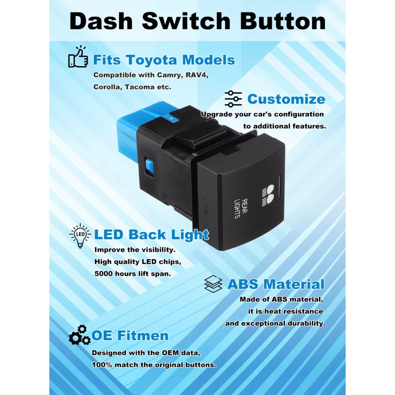 dreamrefit Blank Light LED Dashboard Dash Push Button Switch For Toyota Camry RAV4 Corolla