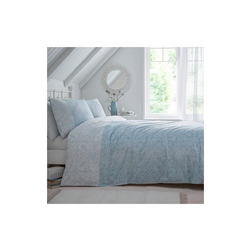 - Introducing the epitome of timeless elegance - the blue Frampton Duvet Cover Set by Dreams & Drapes. Crafted with meticulous attention to detail, this set features a refined mono paisley print that exudes sophistication. Flip it over to reveal a pristine white reverse, offering versatility and effortless charm. With its reversible design, this set allows you to effortlessly transform your bedroom into a sanctuary of classic style. Experience the enduring charm and impeccable craftsmanship that is synonymous with D&D Design. Coordinate with our exceptional collection for a perfectly curated, polished look.