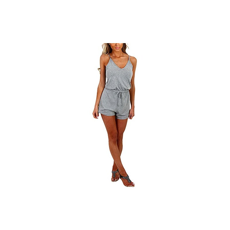 Dreamskull Women Summer Casual Spaghetti Strap Adjustable Waist Drawstring Short jumpsuit Solid Cami Romper for girl