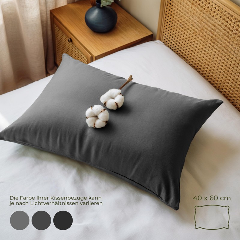 Dreamzie - 100% Organic Cotton - Pillowcase 40 x 60 cm Cotton - Set of 2 - Anthracite - Cushion Cover with Zip - Oeko-Tex