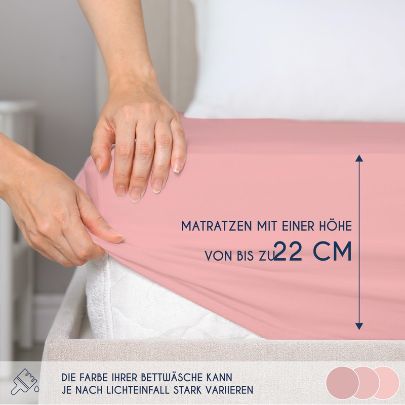 - Spice up your mattress – design your bedding with this jersey cotton fitted sheet for adults in pink (100% jersey cotton and 130 g/m²), a lightweight, breathable and very durable material: you will love slipping under the blanket. 90 x 190/200 cm refers to the size of the mattress, the dimensions of the sheet may vary by a few centimetres to better fit the pillow.