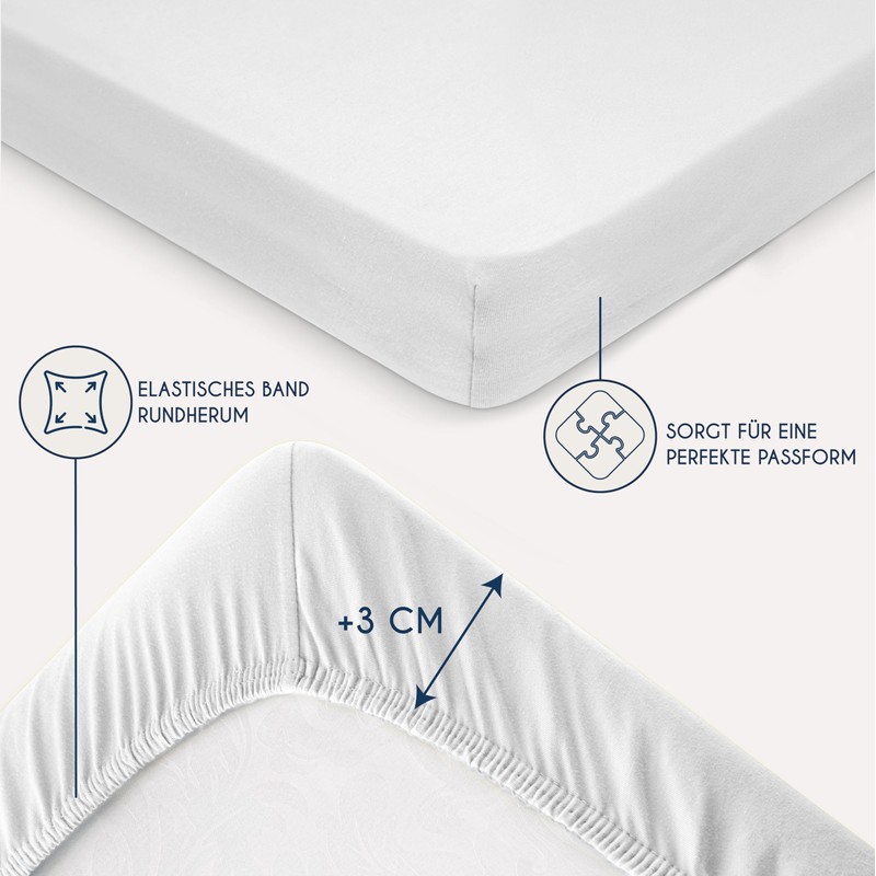 - Spice up your mattress – design your bedding with this fitted sheet for adults made of jersey cotton in white (100% jersey cotton and 130 g/m²), a lightweight, breathable and very durable material: you will love slipping under the blanket. 80 x 160 cm refers to the size of the mattress, the dimensions of the sheet may vary by a few centimetres to better fit the pillow.