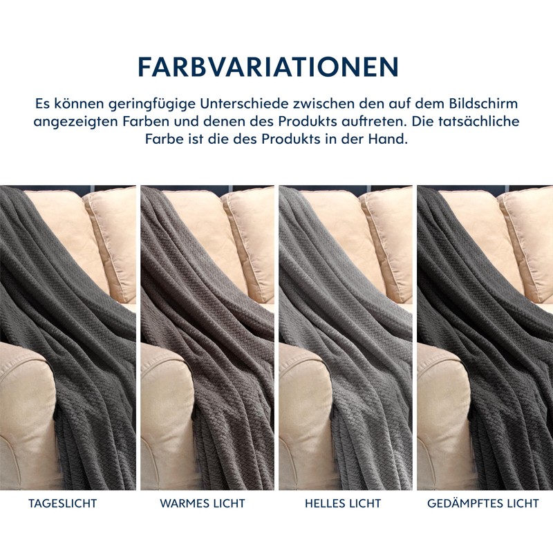 Discover our blanket sofa. The couch blanket is both soft and cosy. It gives you the feeling of floating on clouds. Decoration and blanket in one. They can also be used as sofa blankets for covering, sofa blankets for seat or couch blanket throw. The couch blankets made from 100% polyester microfibre can be cleaned quickly and easily. Available in 4 sizes: 130 x 150 cm, 150 x 200 cm, 220 x 240 cm, 220 x 270 cm and in 10 timeless colours: light purple, light grey, dark grey, light brown, turquoise, saffron yellow, black, cream, burgundy, dark mauve. What color suits your decor best?
