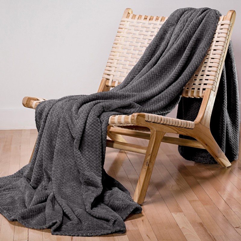 Dreamzie - Fluffy Fleece Blanket 130 x 150 cm - Cuddly Blanket Microfibre 100% Polyester 260gsm - Sofa Blanket with Herringbone Pattern and Soft Feel - Anthracite