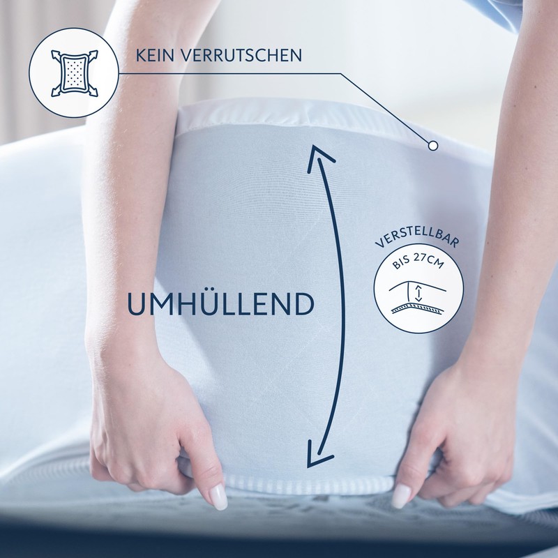 - Perfect Fit Our mattress protector has an elastic edge. This means that it adapts perfectly to the bed and prevents the fabric from slipping. Suitable for many mattress thicknesses and sizes.