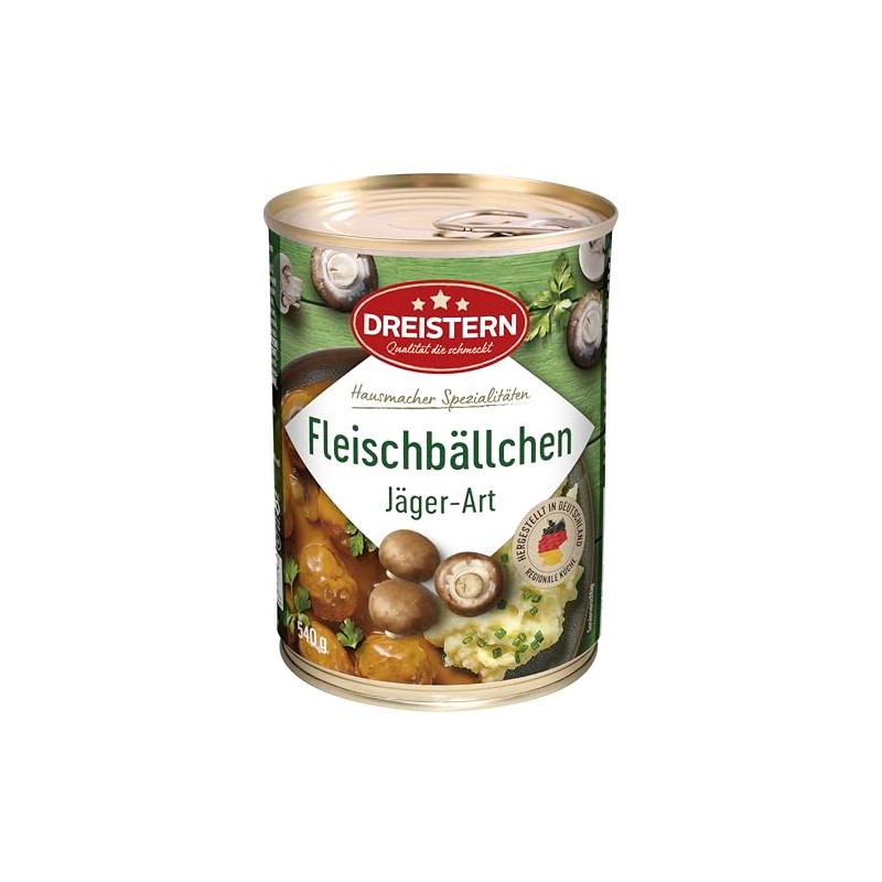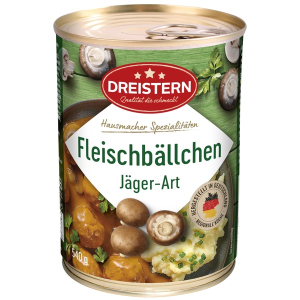 DREISTERN Meatballs Hunter Art, 540 g, Delicious Ready Meal with Meatballs in Practical Recyclable Preserve