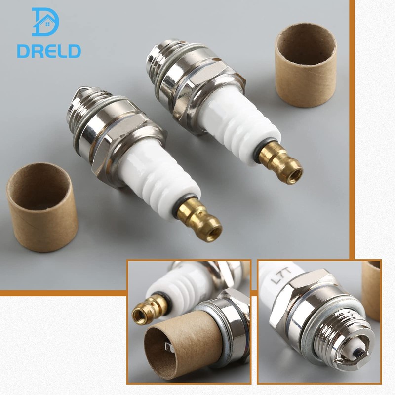 Dreld 2Pcs L7T Spark Plugs, 2 Stroke Engine Spark Plug Engine Accessory Replacement Parts for Chainsaw Brush Cutter Garden Lawnmower Strimmer Trimmer