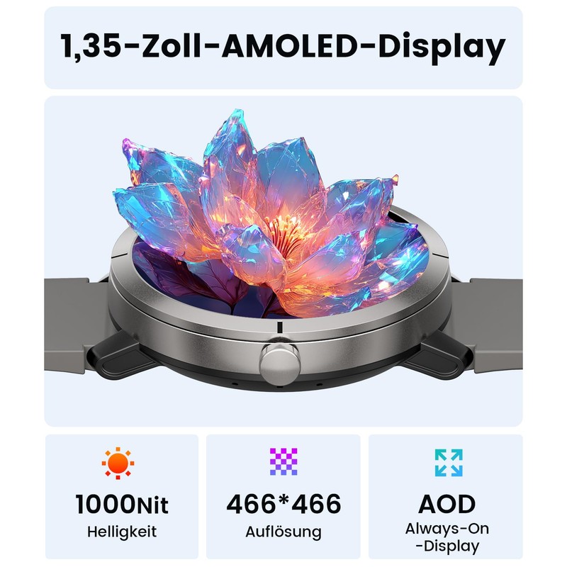 • 【Bright AMOLED Display & More Than 200+ Dials】 The DREMAC smart watch features a 1.35 inch AMOLED HD display with a resolution of 466 x 466 pixels and a 60Hz refresh rate. Even in bright sunlight, it offers excellent text and image display. In addition, the dial market offers more than 200 dynamic dials to choose from. You can also use photos to show your personal style.