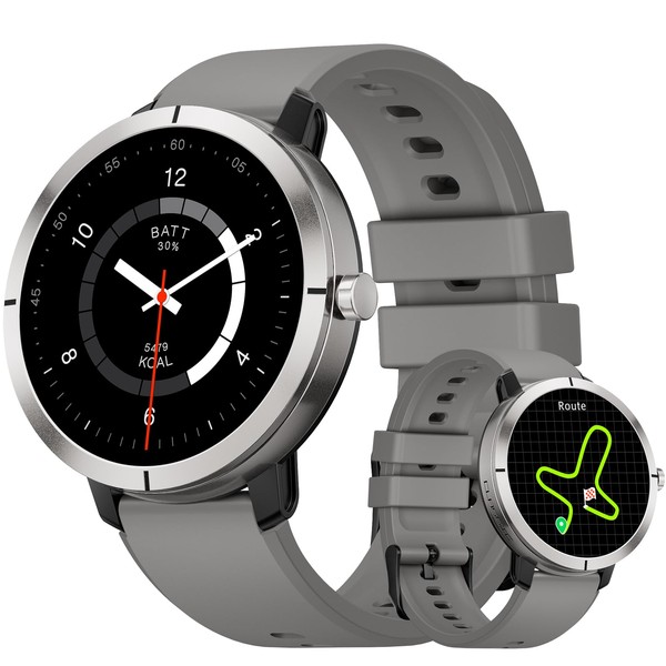 DREMAC Men's Women's Smart Watch, Integrated GPS, 1.35 Inches Amoled Screen/Aluminium Case, 170+ Sports Modes, 5ATM Fitness Tracker with Heart Rate, Sleep Tracker, for iOS Android, Grey