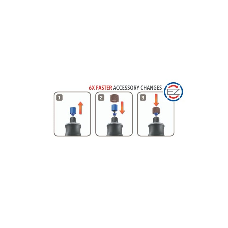 • The EZ SpeedClic quick-change system allows for quick, easy and keyless accessory changes; simply: pull, place, push