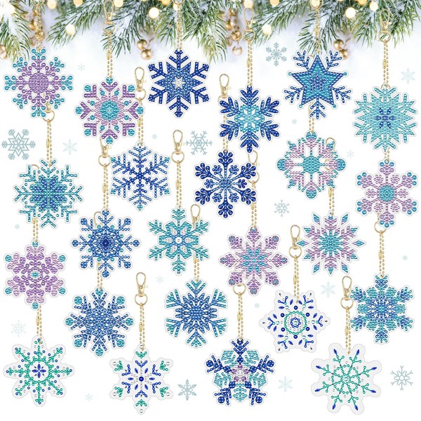 - 【24 Different Styles】 Our package contains 24 Christmas diamond snowflake painting key chains with tools, which are suitable for those who like DIY; Plenty to use for multiple projects or share with friends and family for a fun Christmas break together