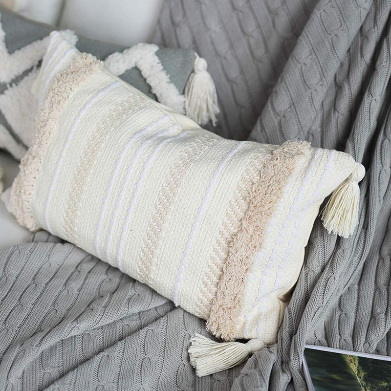 Dremisland Lumbar Small Decorative Throw Pillow Covers for Couch Bedroom Sofa Embroidery Pillow Cases Cream Zipper Rectangle Pillows Cover with Fringe Tassels (12"X20", Yellowy Cream)