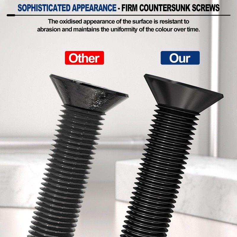 3. The surface treatment of the black screws is oxidised black, non-electroplated black zinc, which is not easy to fade, rust-proof and scratch-resistant.