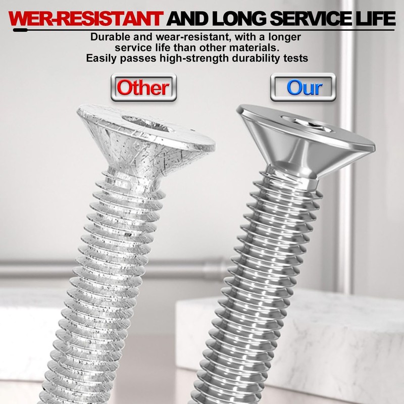 4. The best feature of countersunk screws is their hidden design. After tightening, the screw head is barely visible, making your furniture, appliances or projects look more neat and aesthetically pleasing.