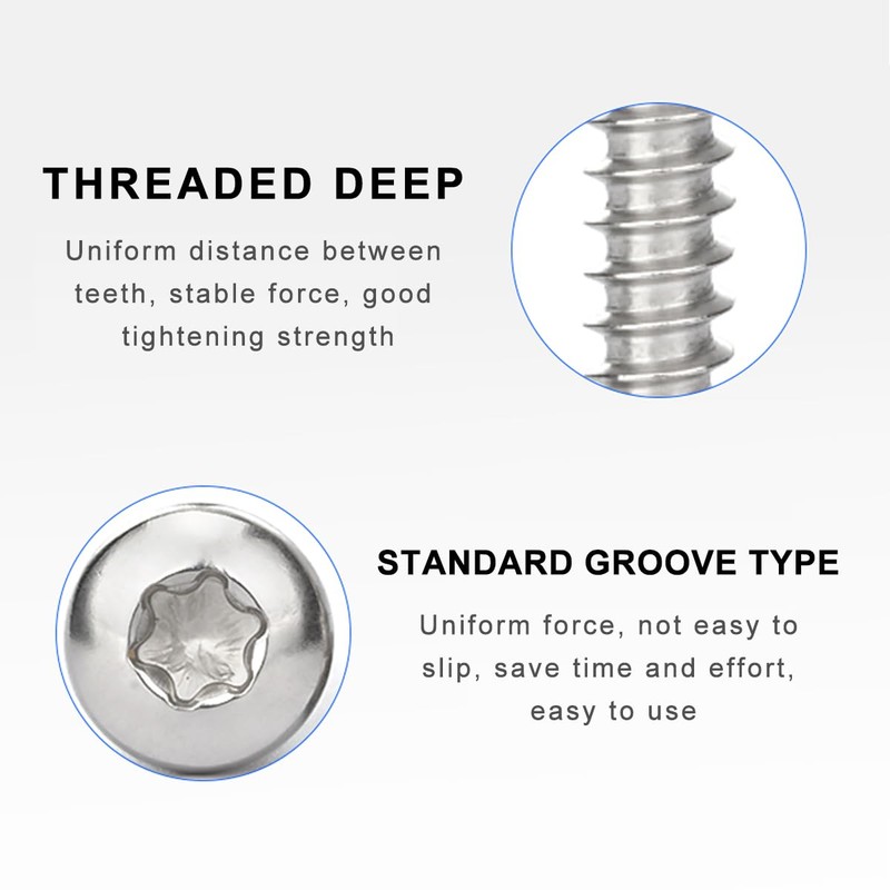- EASY INSTALLATION The sharp tip of the Torx screw can be easily screwed into wood or thin iron materials, saving time and effort. High strength, not easy to break.