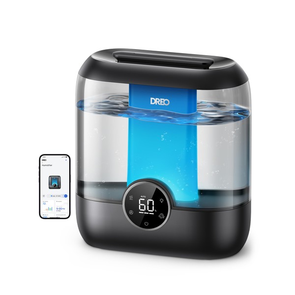 Dreo Smart Humidifiers for Bedroom, 6L Top Fill Supersized Cool Mist Humidifier for Large Room, 60 Hour Runtime, Quiet Ultrasonic Humidifiers for Plants, Baby, Indoor, Home, Night Light, Black