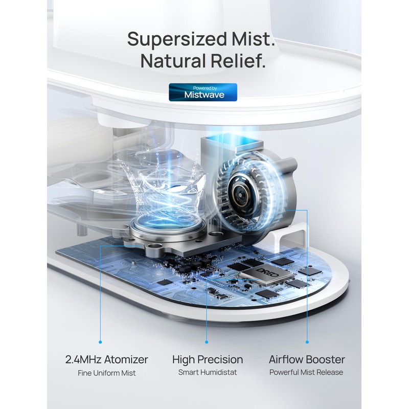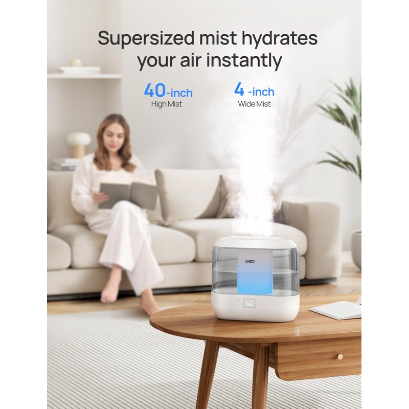 - Larger mist, faster relief: Powered by Dreo's Dual-intake design, this humidifier creates a supersized mist 3 times larger than most air humidifiers, bringing faster dry air relief and helping you breathe easy and healthy