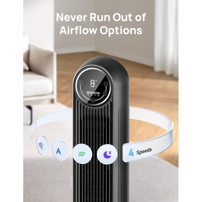 - Customizable Comfort: Featured with 4 modes (Normal/Natural/Sleep/Auto) and 4 speeds from soothing-soft to storm-strong, you can easily customize your comfort at the touch of a button, on the panel or the remote.