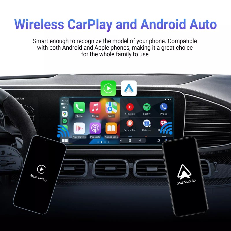 • 【 Let your Hands Free 】No need to install other plugins, USB plug and play. After successful installation, this magic adapter will automatically connect to your phone, even if you put your phone in your pocket.New All-in-one Technology let you can seamlessly switch between the Android 12 system, wireless CarPlay/Android Auto at any time. Smart enough to recognize the model of your phone, making it a great choice for the whole family to use.