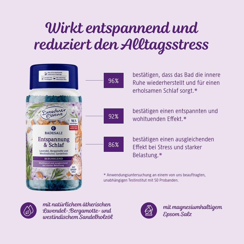 Dresdner Essenz Bath Salt Relaxation & Sleep 600 g | Has a Soothing and Balancing Under Heavy Load | Bath Crystals with Essential Oils of Lavender, Bergamot and West Indian Sandalwood