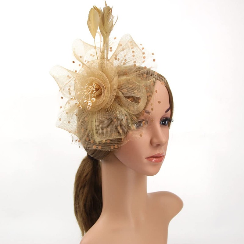 - Material: This vintage, glamorous and chic charming hat with its birdcage veil and fluffy array of boa feathers, which cascade on the back with goose biot feathers forming ovals and swinging in the wind. This trendy style fits with everything. One size fits all.