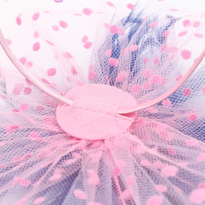 DRESHOW Fascinator Hats for Women Pillbox Hat with Veil Headband and a Forked Clip Tea Party Headpiece, 03-Pink White