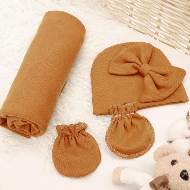 - COMFORTABLE FABRIC - This baby girl swaddling, bow hat elastic glove set is made of the most comfortable fabric, super soft, elastic and comfortable.