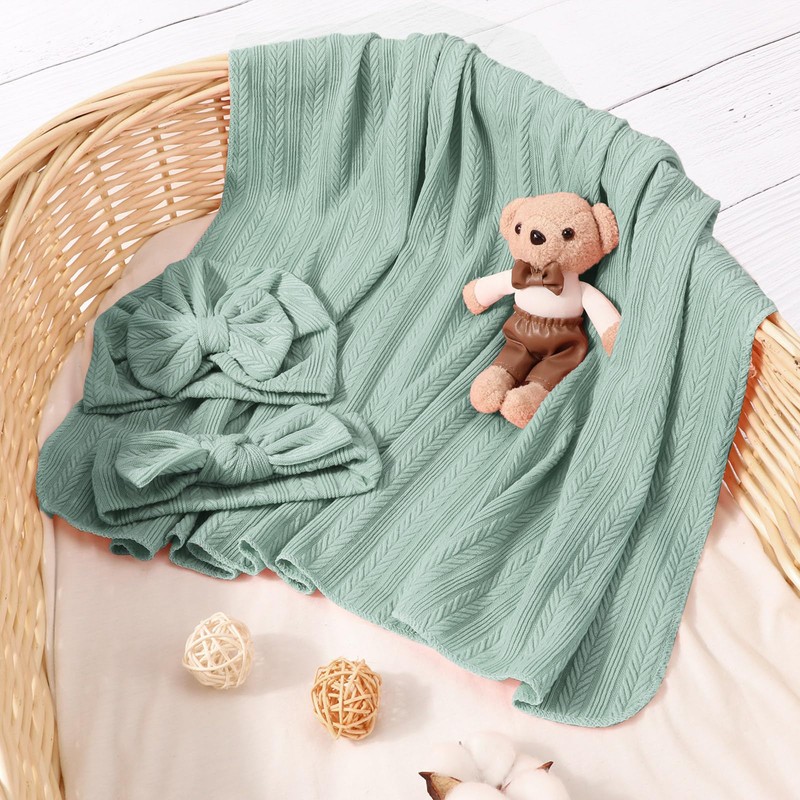 DRESHOW Newborn Reception Blanket Toddler Warm for Girls with Matching Bow Hat and Bow Headband, 1 set: hat + hairband + blanket (lake green)