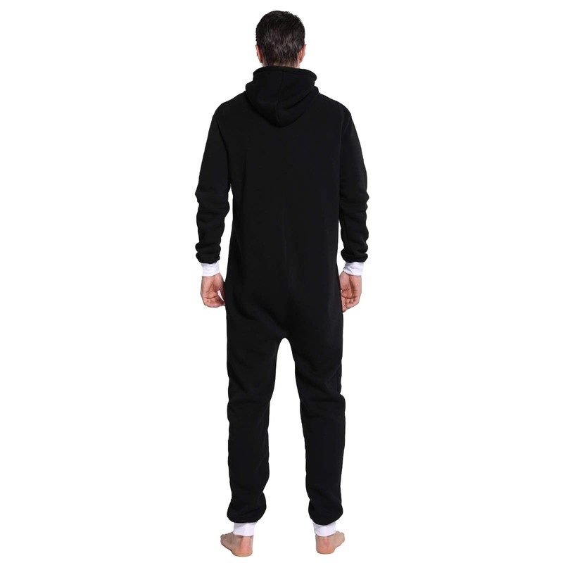 dressfan Unisex Pyjamas One Piece Pyjamas Hood Black Onesie Sleepwear Jumpsuit Thermal Christmas Pyjamas for Adults Teenagers Couples, black