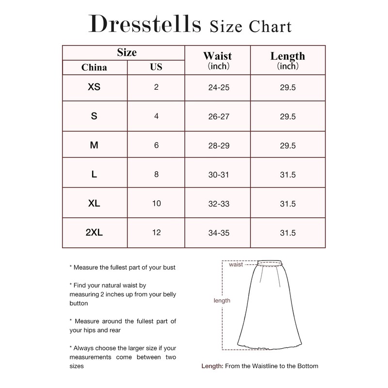 - NOTE: The size of faldas de mujer elegantes are different from the US size. Please refer to Dresstells' size chart before placing your order.The long pleated skirt is suggested to wash by hand or machine with cold water, machine wash requires a laundry bag, do not bleach, low Iron if necessary